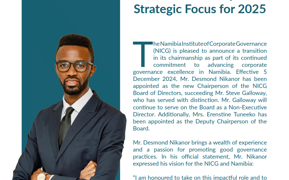 The Namibia Institute of Corporate Governance (NICG) is pleased to announce a transition in its chairmanship as part of its…